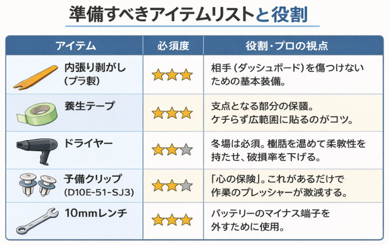 しかし、いざネットで検索してみると、「ツメが折れた」「隙間ができて異音が止まらない」「エアバッグ警告灯が点灯した」といった失敗事例が次々と出てくる。それを見て、「自分には無理かもしれない」「愛車を傷つけるくらいなら、今のままでいいか」と、そっとブラウザを閉じてしまった経験があるかもしれません。