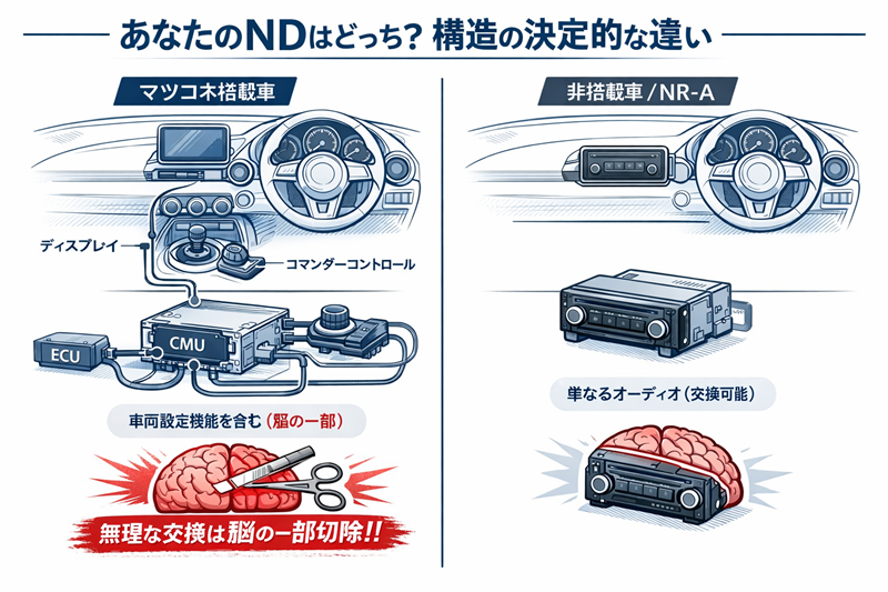 【前提】NDロードスターナビ交換でなぜ「失敗」するのか?マツコネ搭載車と非搭載車の決定的な違い