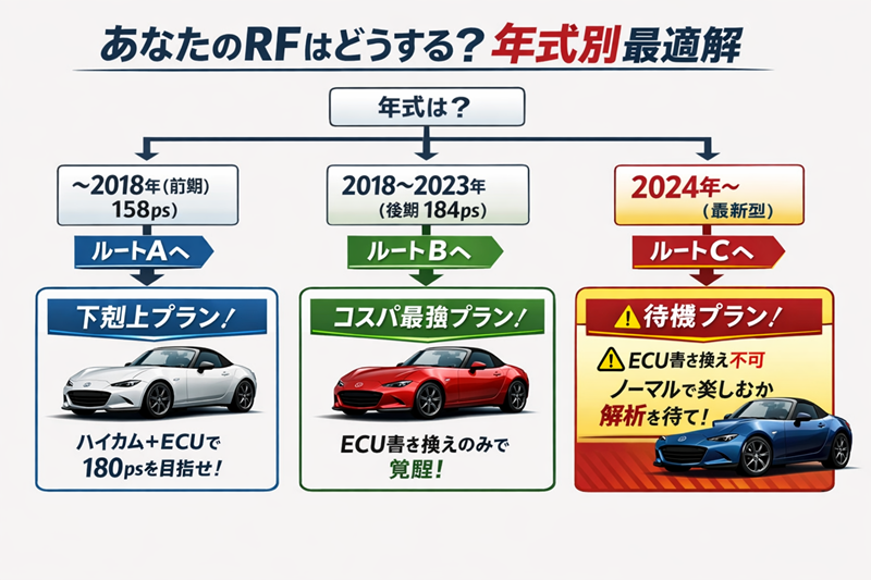 しかし、そのポテンシャルを100%引き出すための「馬力アップ」への道は、年式という壁によって複雑に分かれています。