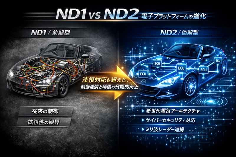 つまり、ND2(大幅改良モデル)と前期型は、外見こそ似ていますが、その中身を支える「神経系」の世代が全く異なるのです。